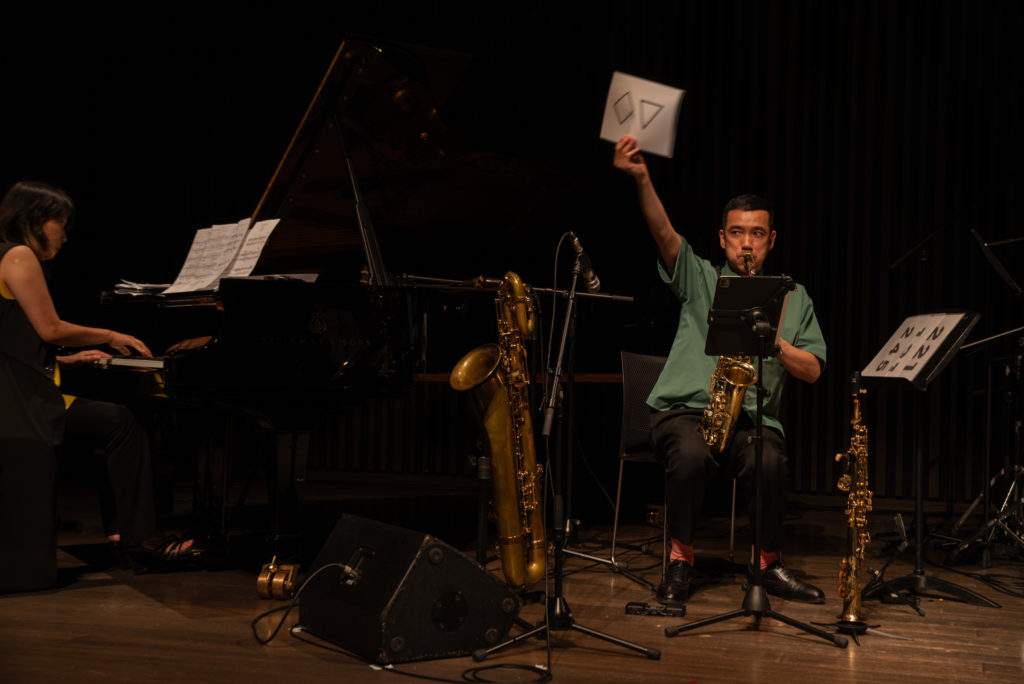 北村の解説と東京現音計画の演奏を交えながら、以下のステップでブラクストンの音楽の核に触れます。